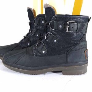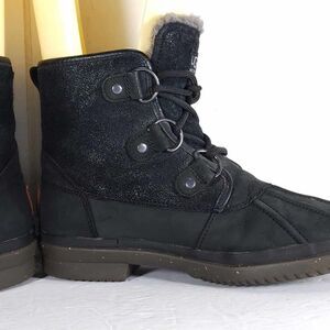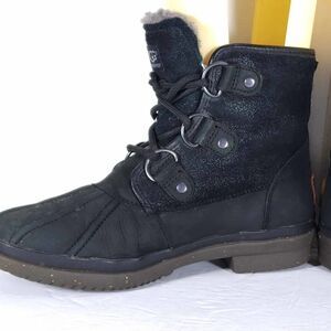 UGG Women's Cecile US 6 Black Leather Waterproof Sheepskin Lined Duck Boots