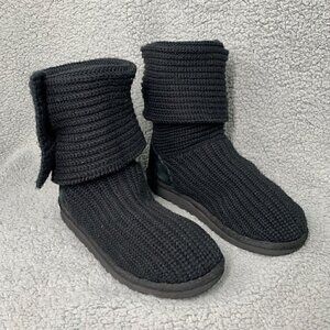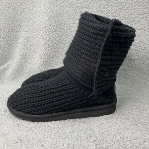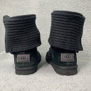 UGG Women's Classic Cardy Fold Over Two Button Tall Knit Boot-Black Suede, Sz 6
