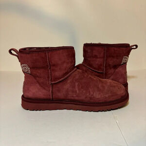 UGG Women's Classic Mini Crystal Bow Suede / Wool Lining Winter Boot Red Size 6