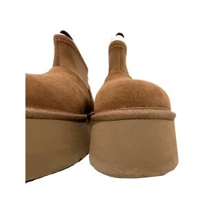 Condition: Boots haven't been used. There is a visible scrape/scuff mark on the platform wedge of the left shoe. They do not have the box.