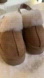 Slip into comfort with UGG's cozy slippers. Features plush cream fur lining and tan suede exterior. Cleaning required as seen in pictures