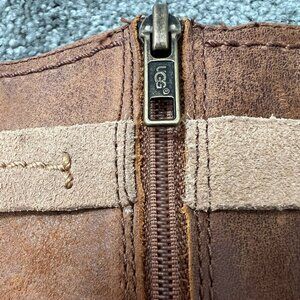 UGG Darcie Leather boot is perfect for fall! The side zip and buckel at the top make them adjustable for everyone, and the 1" heel provides a little height with elegance. Total boot height sits just below the knee.