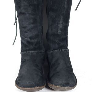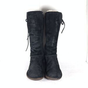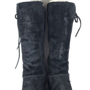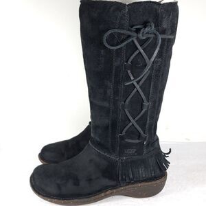 UGG Women's Desoto US 8 Black Suede Sheepskin Lined Fringe Tall Winter Boots