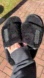 Soft black slides with plush texture. Features UGG branded strap.