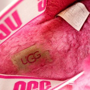 UGG Womens Faux Fur Pink White Slipper 5 Slip on Slingback Open Toe Elastic Band