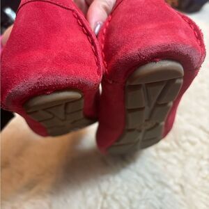 UGG Womens Flores Suede Loafer in Ribbon Red size 8 Leather Driving Flat Shoes