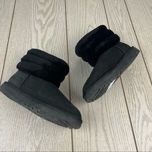 UGG Women's Fluff Mini Quilted Boots, size: US6/EUR37 women's, color: Black w/ White Logo Heel, MSRP $160, no box or tags included. VEUC pre-owned item. 5 star rated customer favorite!!