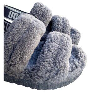 UGG Womens Fluff Yeah Slide Sandals Size 9 Sheepskin & Wool Gray