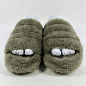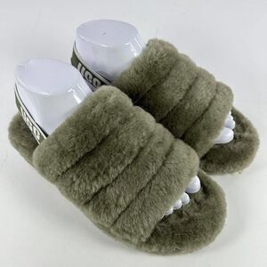 UGG Women's Fluff Yeah US 7 Army Green Platform Slide Fur Sandals
