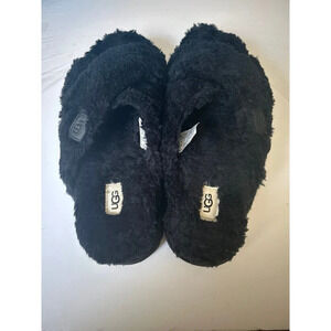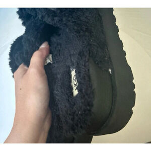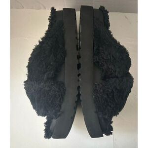 Ugg Women’s Black Fuzz Sugar Crossed Slippers Platform Faux Fur sandal style