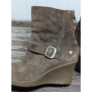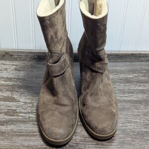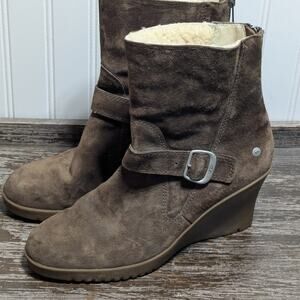 UGG Women's Gisella Brown Suede Wedge Sherpa Lined Winter Ankle Boots Size 10. Pre owned-gently used.