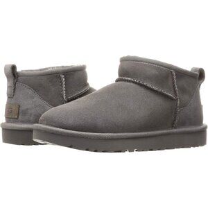 UGG Women's Grey Rounded Toe Sheepskin Lining Classic Ultra Mini Boot