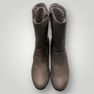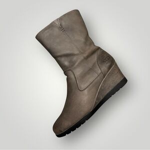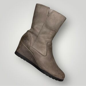 UGG Womens Joely Boot Size 8 Waterproof Gray Leather Wedge Heel Sherpa Bootie