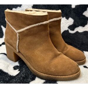 UGG Women's Kasen Suede and Sheepskin Block Heel Booties Size 7.5