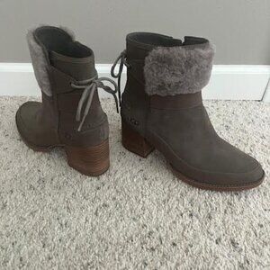 UGG Women's Kirke Suede/Leather Ankle Boots Size 7.5 Dark Taupe Zip Up Ankle