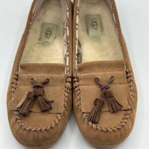 UGG Women's Lizzy Brown Slipper Driving Moccasin Tassel Suede Sheepskin Size 8