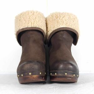 UGG Women's Lynnea US 7 Fold Over Leather Brown Shearling Cuff Clog Boot
