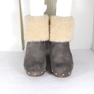 UGG Women's Lynnea US 7 Gray Suede Fold Over Studd Shearling Cuff Clog Boot