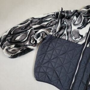 UGG Womens Marlene Oversized Sherpa Quilted Jacket Size S Black & Gray Marble