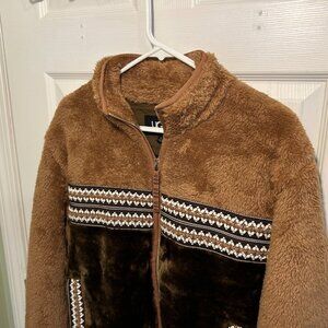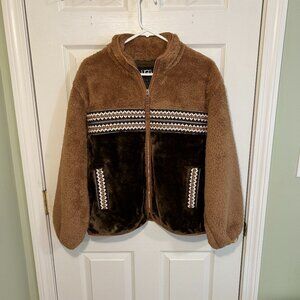 * Full zip plush fleece and faux fur blocked jacket