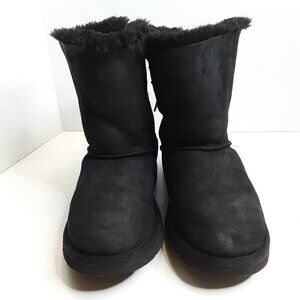 Normal wear, no box, wear insoles and in the soles. Please scroll picture for more details. UGG Women's Mini Bailey Bow II Black Boot size 6. Pet and smoke free home.