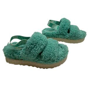 UGG Women's Oh Fluffita 1120876 Green Curly Sheepskin Strappy Slippers Size 9