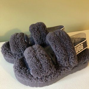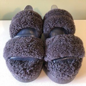 Brand: UGG Size: 9 Color: Shade Condition: New Merging our Oh Yeah and Fluffita, Oh Fluffita offers the best of both worlds with its strappy silhouette, curly sheepskin, and cushioned platform sole. Featuring a contoured footbed for a custom feel, it's lined with curly sheepskin and punctuated with graphic logo detailing, adding a bold statement to any look. * Curly sheepskin upper * Elastic strap with UGG® graphic * Open toe design * Heel: 1.75 Inch * Platform Height: 1.75 Inch * 10mm plush curly sheepskin footbed * Durable and lightweight molded EVA outsole