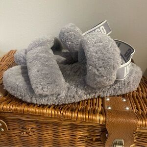 UGG Women's Oh Yeah Slide Fluffy Soft Slippers Sandals Sz 8 Gray Sheepskin Cozy
