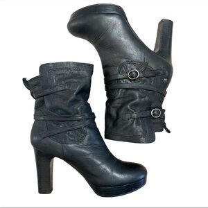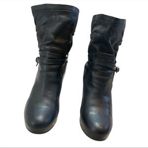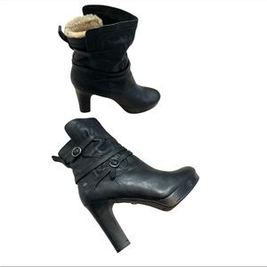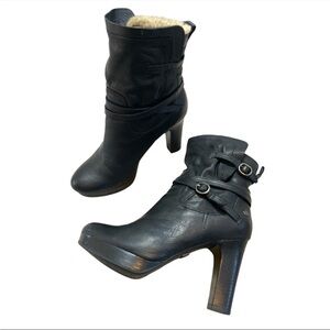 UGG Women’s Olivia Black Leather Platform High Heel Boots 6.5 Shearling Wool