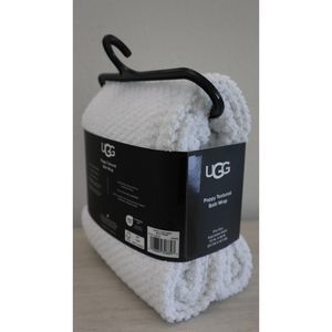 UGG Women's One Size Adjustable Width White Poppy Textured Cotton Body Bath Wrap