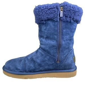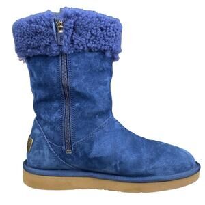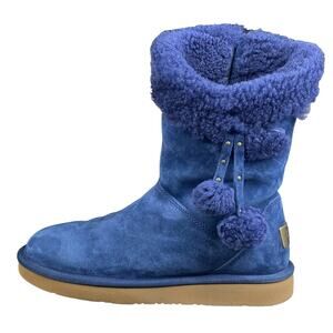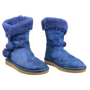 UGG Women’s Plumdale Blue Suede Cuffed Pom Pom Winter Boot Size 7