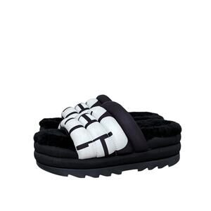 UGG Women's Puft Platform Furry Black Slide Sandals- Size 9