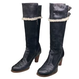 UGG Women’s Raya Black Suede Sheepskin Trimmed Riding Boot Size US 7.5