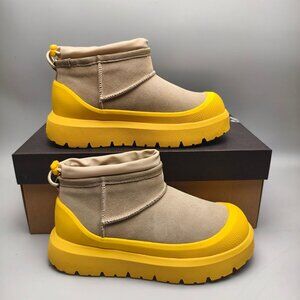 UGG Womens Sand-Colored Thick-Sole Snow Boots with Yellow Trim