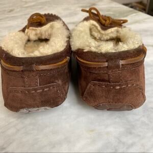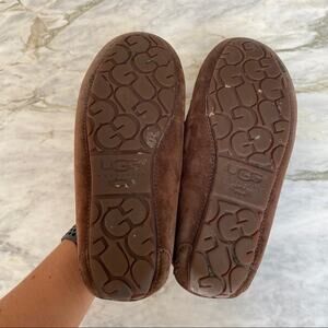 UGG Womens Shearling Lined Chocolate Brown Suede Moccasin Slippers Size 6