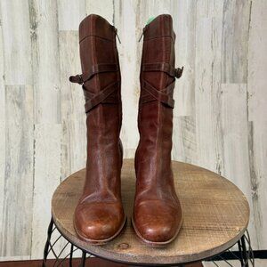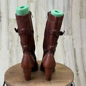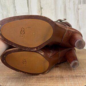 UGG Women's Size 12 Caroline Mid Calf Leather Boots Brown Heeled