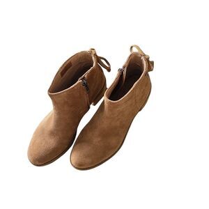 UGG Women's Size 7 Camel Suede Lace Back Side Zip Heeled Ankle Booties