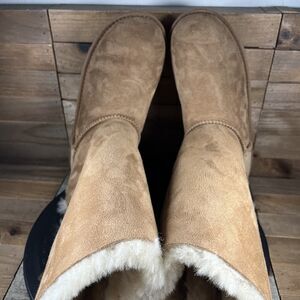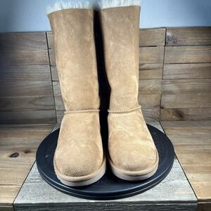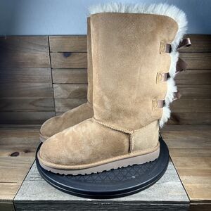 UGG Womens Size 4 Bailey Bow Tall II Triple Chestnut Suede Fur Boots Eur 34