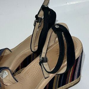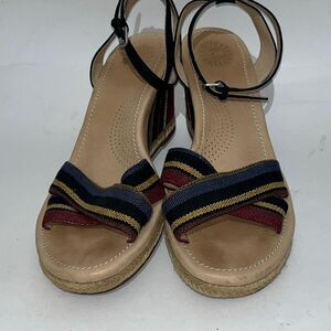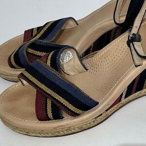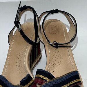 UGG Women's Striped Ankle Strap Nyssa Espadrille Wedge Heel Sandals Beige Size 8