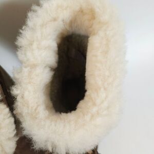 SEO Keywords: UGG Suburb Sweater Boots, Brown Sheepskin Boots, Mid Calf Suede Boots, Winter Cozy UGG, Women’s Size 5 UGG
