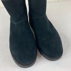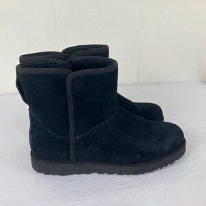 UGG Womens Sz 7 Black Suede Sherpa Lined Pull On Warm Winter Ankle Shortie Boots