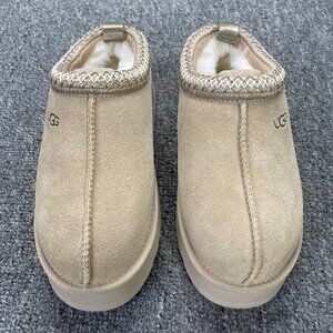 UGG Womens Tazz Mule Shearling Suede Mustard Seed Platform Slippers