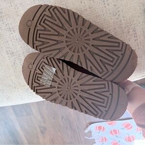Slip into luxurious comfort with UGG's rich brownish red platform slippers. Ideal for cozy days at home.