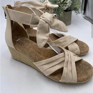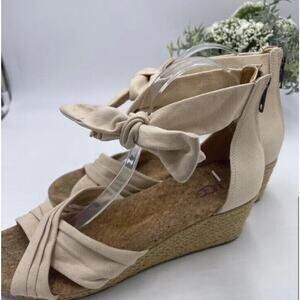UGG Women's Traci Sandal, Cream Sz 9 Knotted ankle-strap espadrille wedge