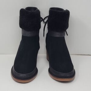UGG Women's Wedge Block Boots Lace Up Shearling Suede 1104863 Size 6 Pre-owned