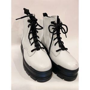 UGG Women's White Black Sidnee Waterproof Platform Lug Combat Boots Size 9 NWOT