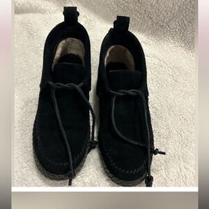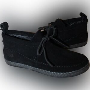 UGG Womens Woodlyn Black Suede Moc Moccasin Booties Lace Up