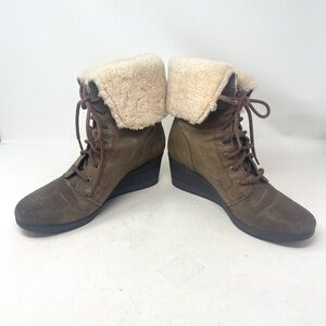 UGG Women’s Zea Brown Wedge Ankle Shearling waterproof Boots Size 19
