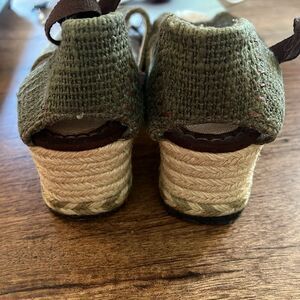 Step out in style with these chic UGG peep-toe wedges. Featuring a unique green hue, these shoes offer both comfort and elegance. Perfect for any occasion.