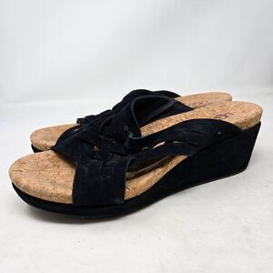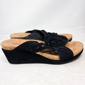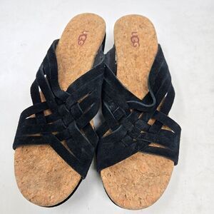 UGG Women's Lilah Black Weave Cork Wedge Sandals Size 9